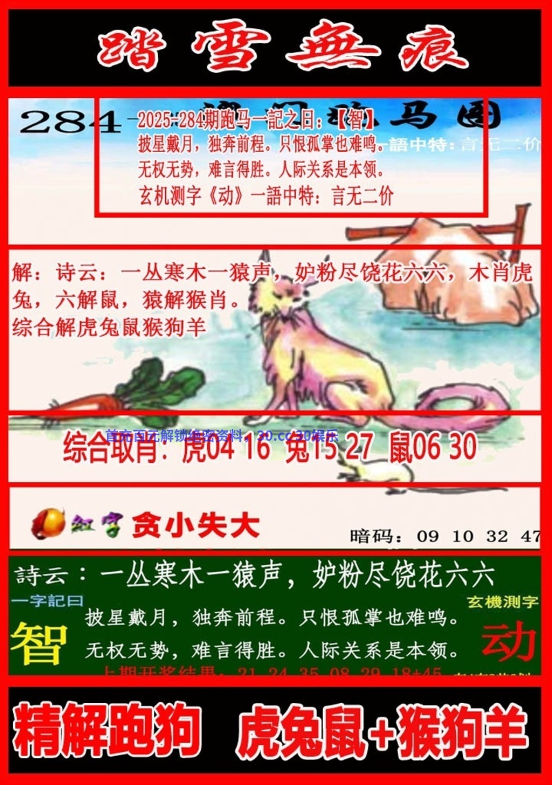 284期【蛇狗鸡兔虎鼠猴龙】开:牛41准