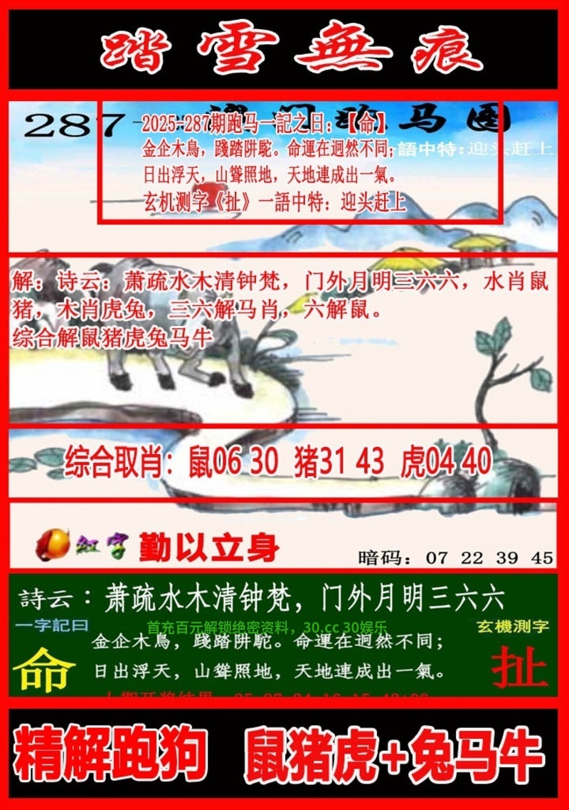 287期【兔蛇鼠狗马鸡羊龙】开:猴34准